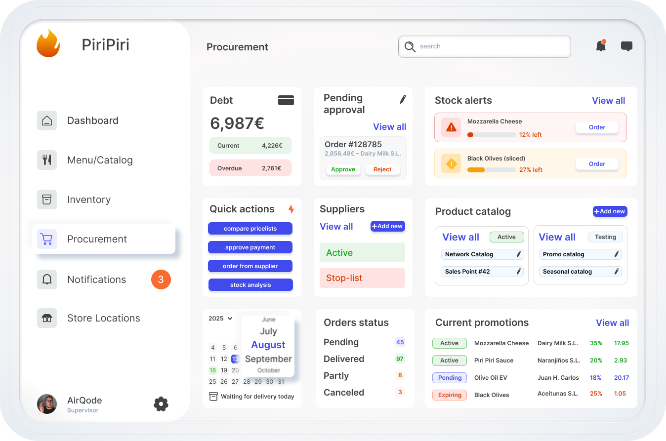 PiriPiri is a next-generation ERP that seamlessly connects teams, processes, and data. In a unified management space, sales, procurement, operations, finance, and marketing come together into a transparent flow—fast, synchronized, and in real time.